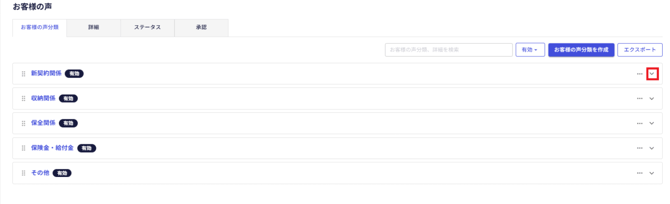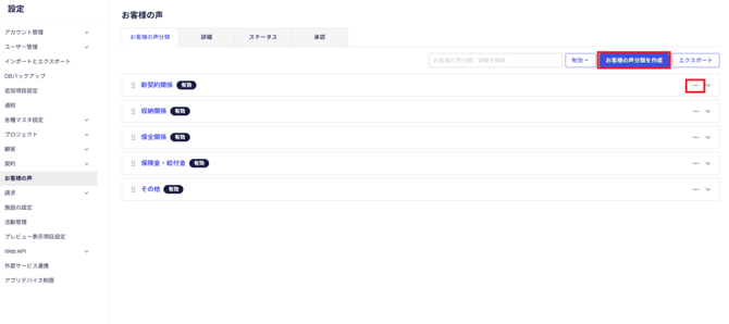 - 「お客様の声分類を作成」もしくは「・・・」から編集が可能です。