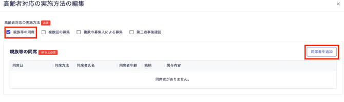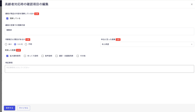 - 「高齢者対応時の確認項目」の必要事項を入力します。