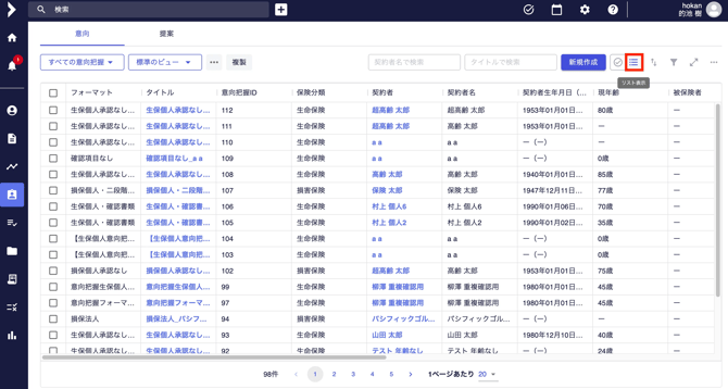 - 上部のリスト表示をクリックし、リスト形式で意向把握の一覧を確認します。
