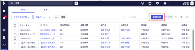 - 画面左側の意向把握のアイコンをクリックし作成画面を開きます。