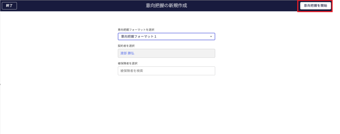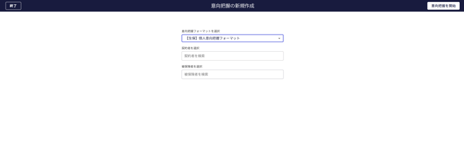 - 利用するフォーマットと被保険者(必要であれば)を選択し、「意向把握の開始」ボタンをクリックします。