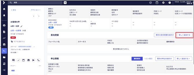 - 対象の顧客を選択の上、「意向把握を開始」ボタンをクリックします。