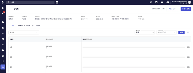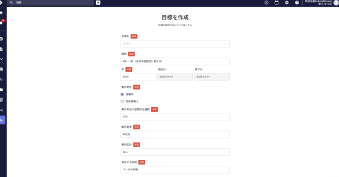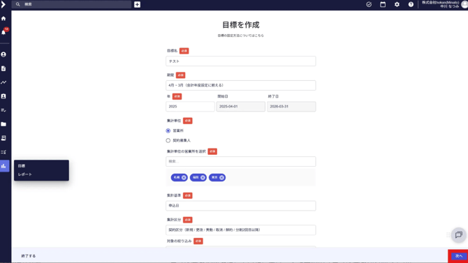 目標を新規作成します。 集計したい期間や、区分毎に設定をすることができます。