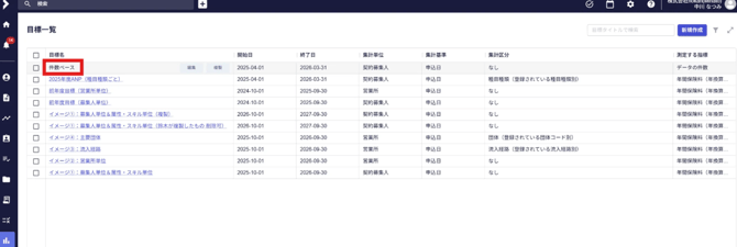 - 閲覧したい目標名にカーソルを合わせ、クリックします。