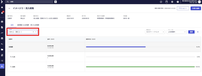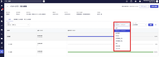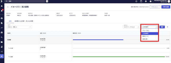 ※集計区分の設定については、目標を新規作成する 4.「集計区分」の項目をご参照ください。