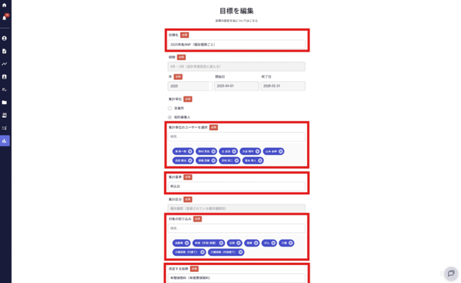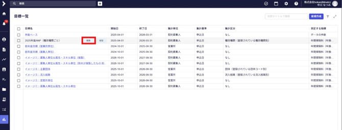 目標を編集します。 集計単位の範囲・基準・絞り込み対象を再設定をすることができます。