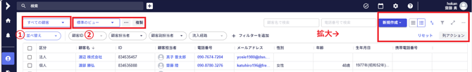 ・表示列を変更 ※詳細の操作方法(リンク):顧客一覧の表示列を変更する