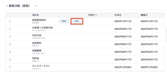 - 項目自体を削除した場合、今まで登録されていたデータが削除され復元することはできません。